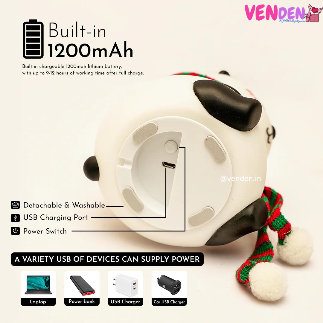 All-Night Companion Use USB charging, after charging is completed, the built-in 1200mAH lithium battery can support the use of panda night light for 15 hours. Low voltage charging, portable.
