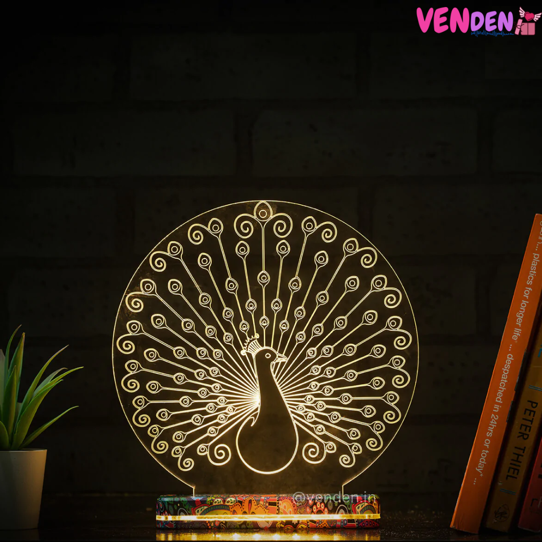 Bring home 3D Illusion Hologram Lamp or get it as a gift for a dear friend and spread joyful vibes all around. Quirkily decked up with a 3D acrylic panel that gives an illusion of a dancing peacock, it makes for quite the perfect gift for friends and family alike. Whether it is a close friend or your family member, they are sure to love this pretty lamp..