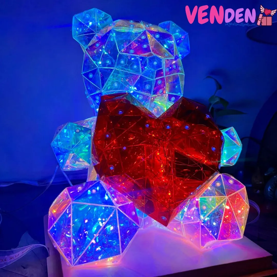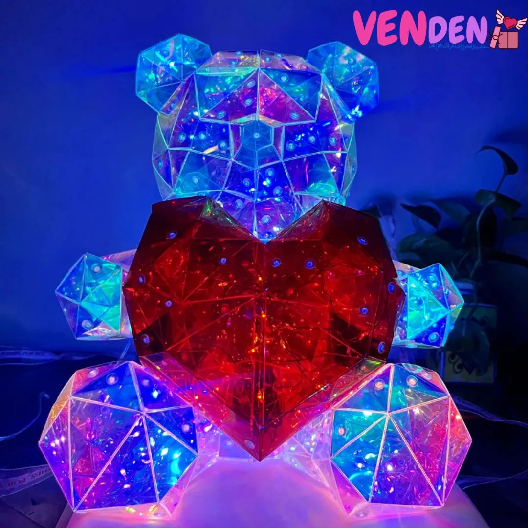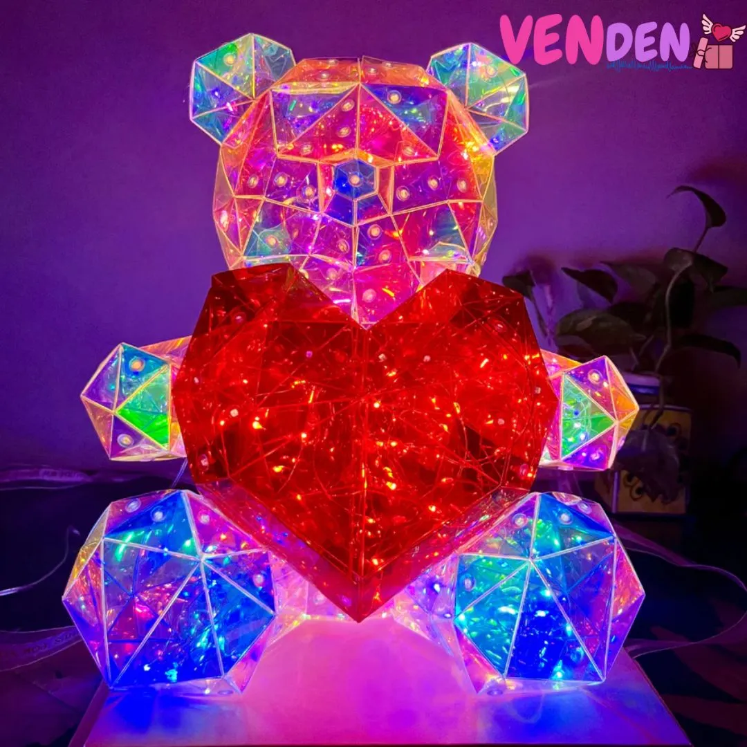 Easy Single Button Operation: Made up of artfully crafted panels cut like a gem that reflect light unlike any other teddy bear you’ve had before and filled with many multicolored LED Lights that can be controlled by the button on the USB.