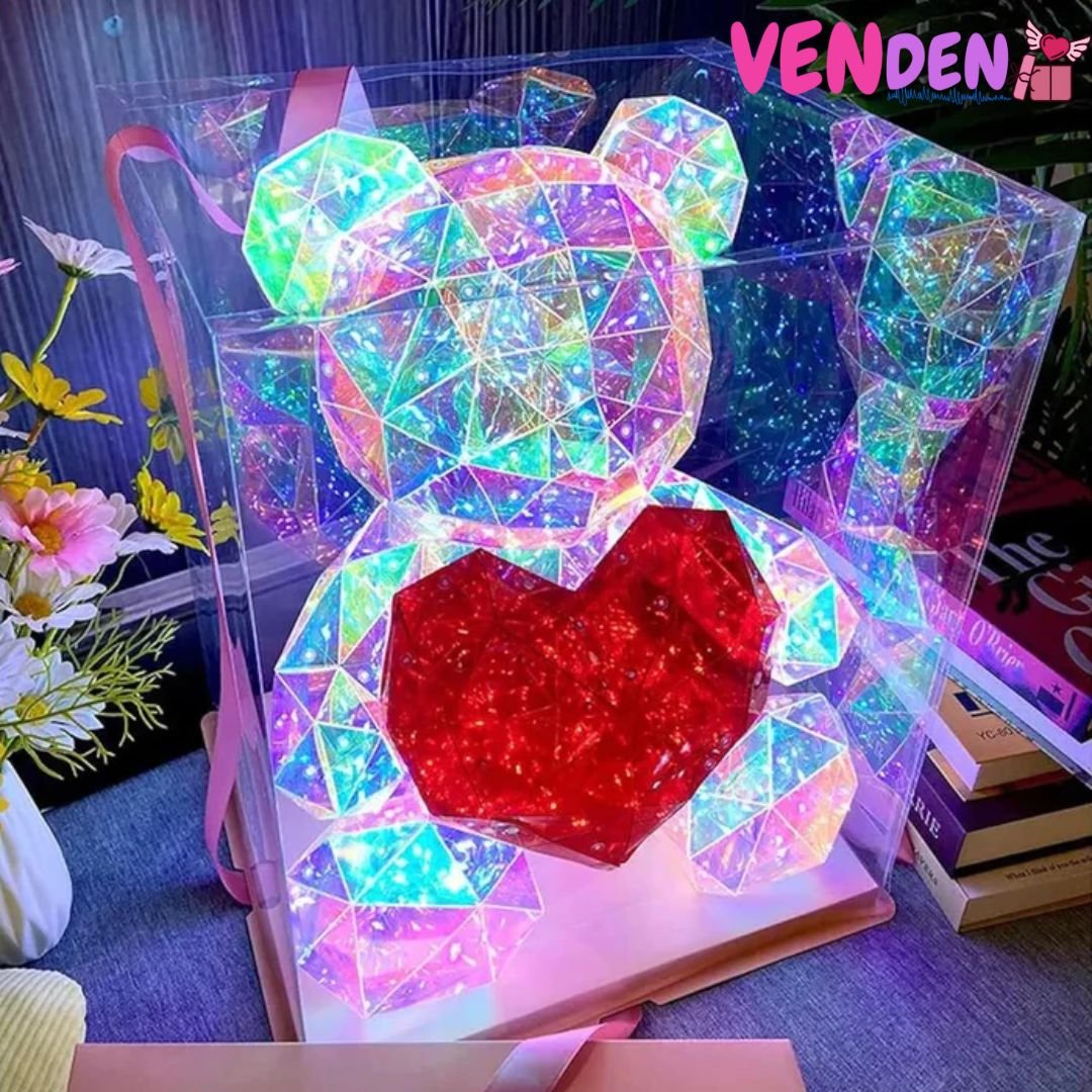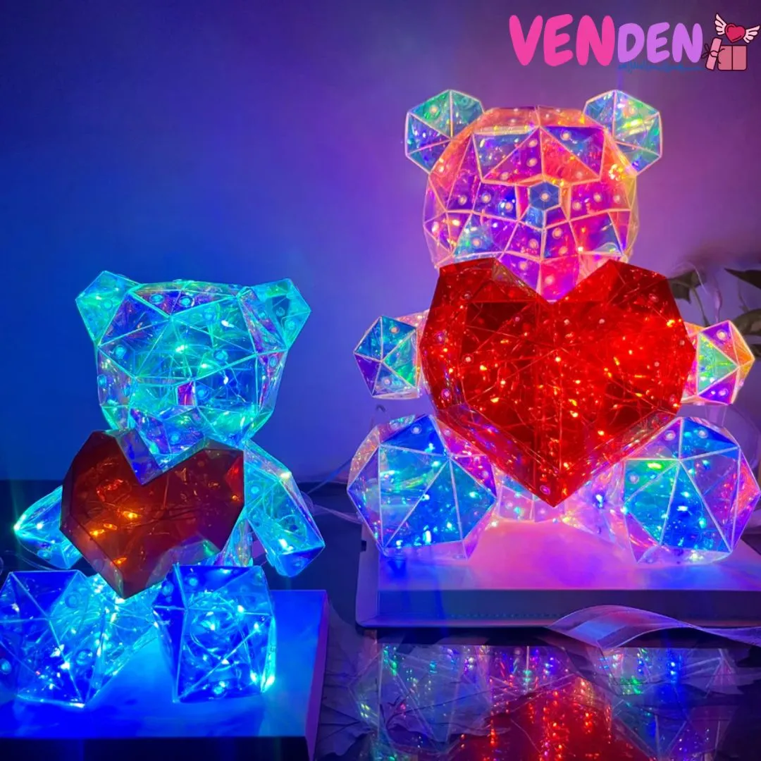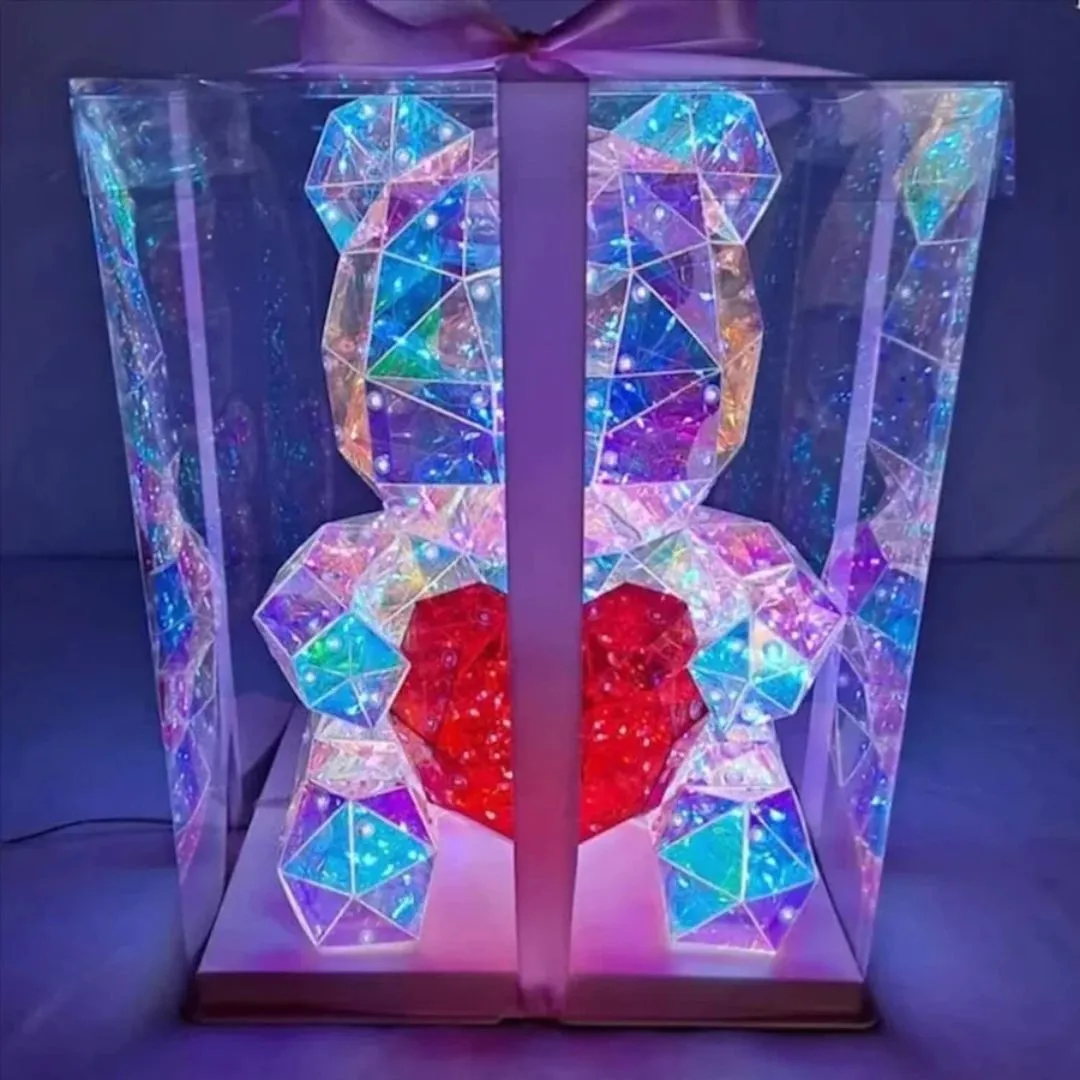 Easy Single Button Operation: Made up of artfully crafted panels cut like a gem that reflect light unlike any other teddy bear you’ve had before and filled with many multicolored LED Lights that can be controlled by the button on the USB.