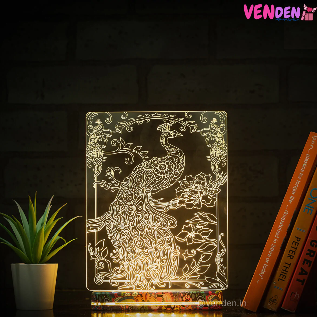 Bring home 3D Illusion Hologram Lamp or get it as a gift for a dear friend and spread joyful vibes all around. Quirkily decked up with a 3D acrylic panel that gives an illusion of a peacock, it makes for quite the perfect gift for friends and family alike. Whether it is a close friend or your family member, they are sure to love this pretty lamp..